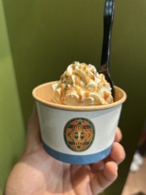 塩キャラメルフレーバーのアイスクリームに、ホイップとバタービールの泡をトッピングされたとにかくスイーツ好きは一度食べて頂きたい一品