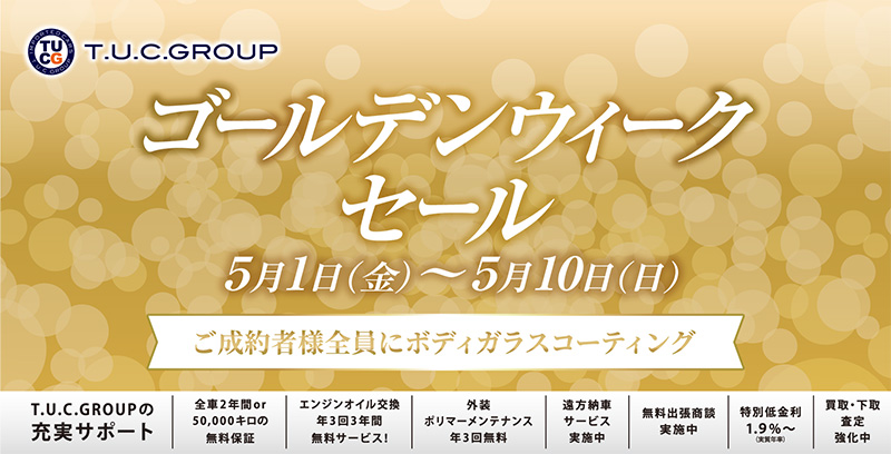 T.U.C八潮店 ホームページ、ブログをご覧いただき、 誠にありがとうございます。 日頃の感謝を込めまして 5月より 【ゴールデンウィークセール!】 ...